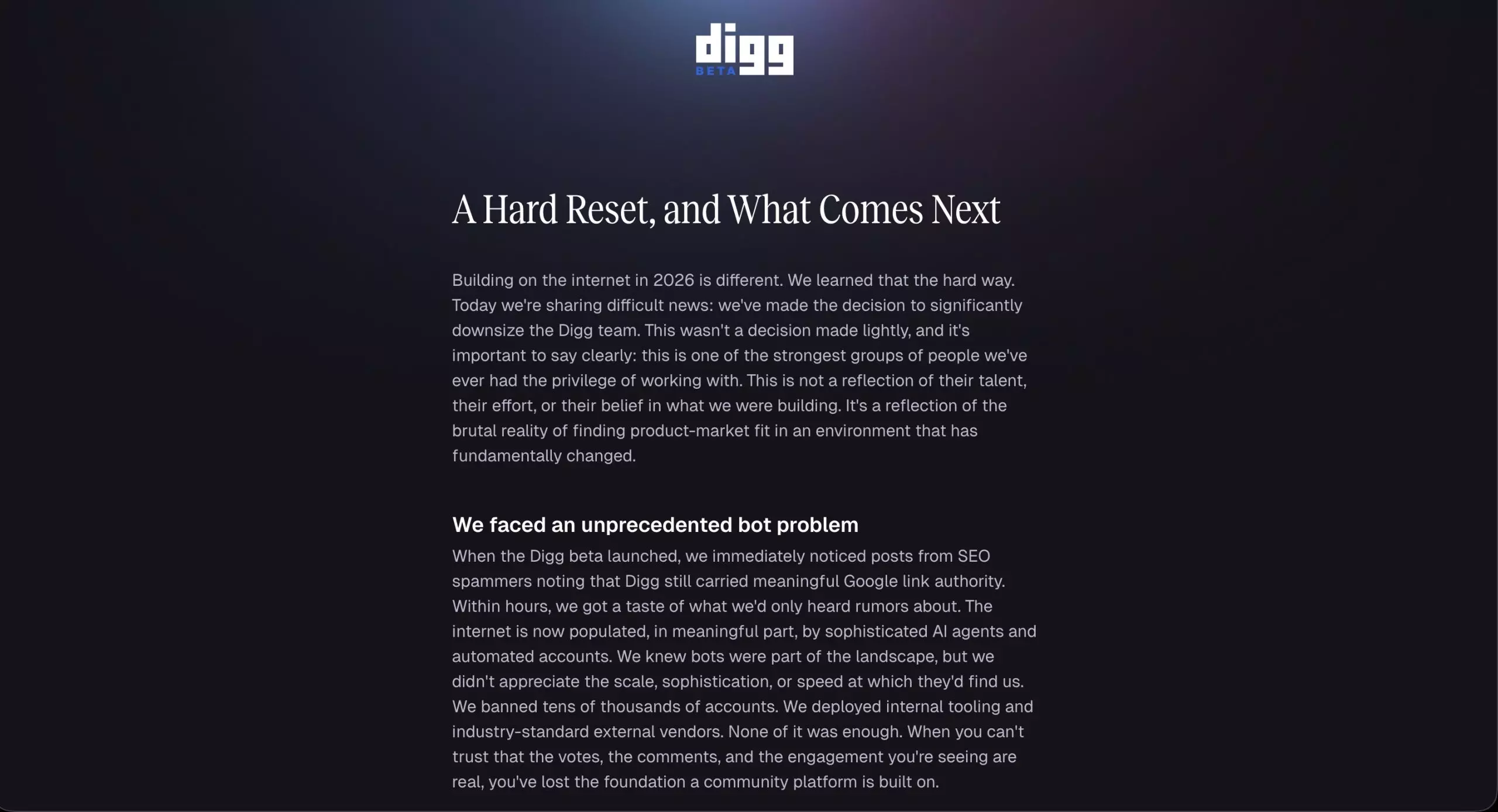 Relanzada en 2026, Digg ya está cerrando debido a la avalancha de contenido generado por inteligencia artificial.