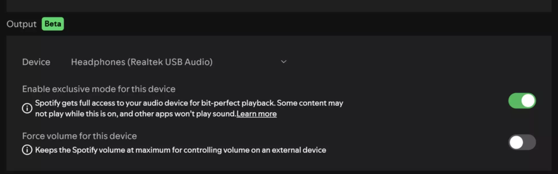 Per attivare questa funzione, è sufficiente andare alle impostazioni di riproduzione dell'app Spotify su Windows e quindi selezionare l'opzione nelle impostazioni di uscita audio.