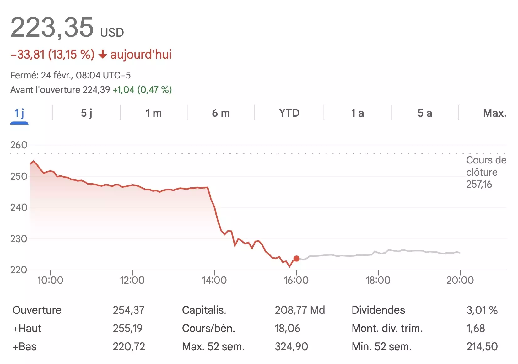 Indeed, the American group saw its stock price fall by more than 13% in a single session, marking its worst daily performance since October 2000. A brutal drop that wiped out nearly $31 billion in market capitalization in just a few hours. But behind this spectacular reaction, the subject is far from new…