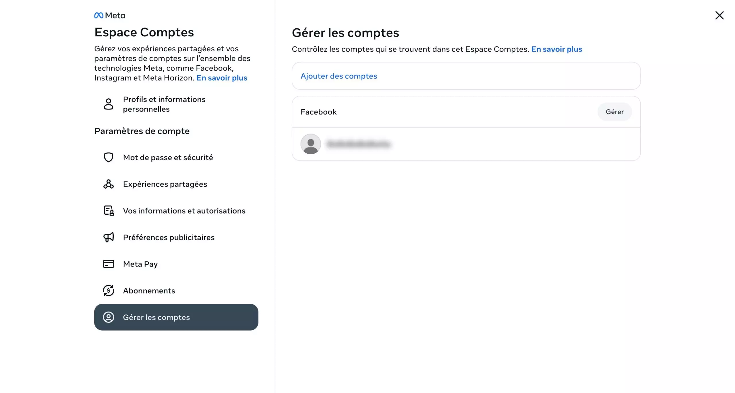 前往“帐户”部分 - 来源:Meta