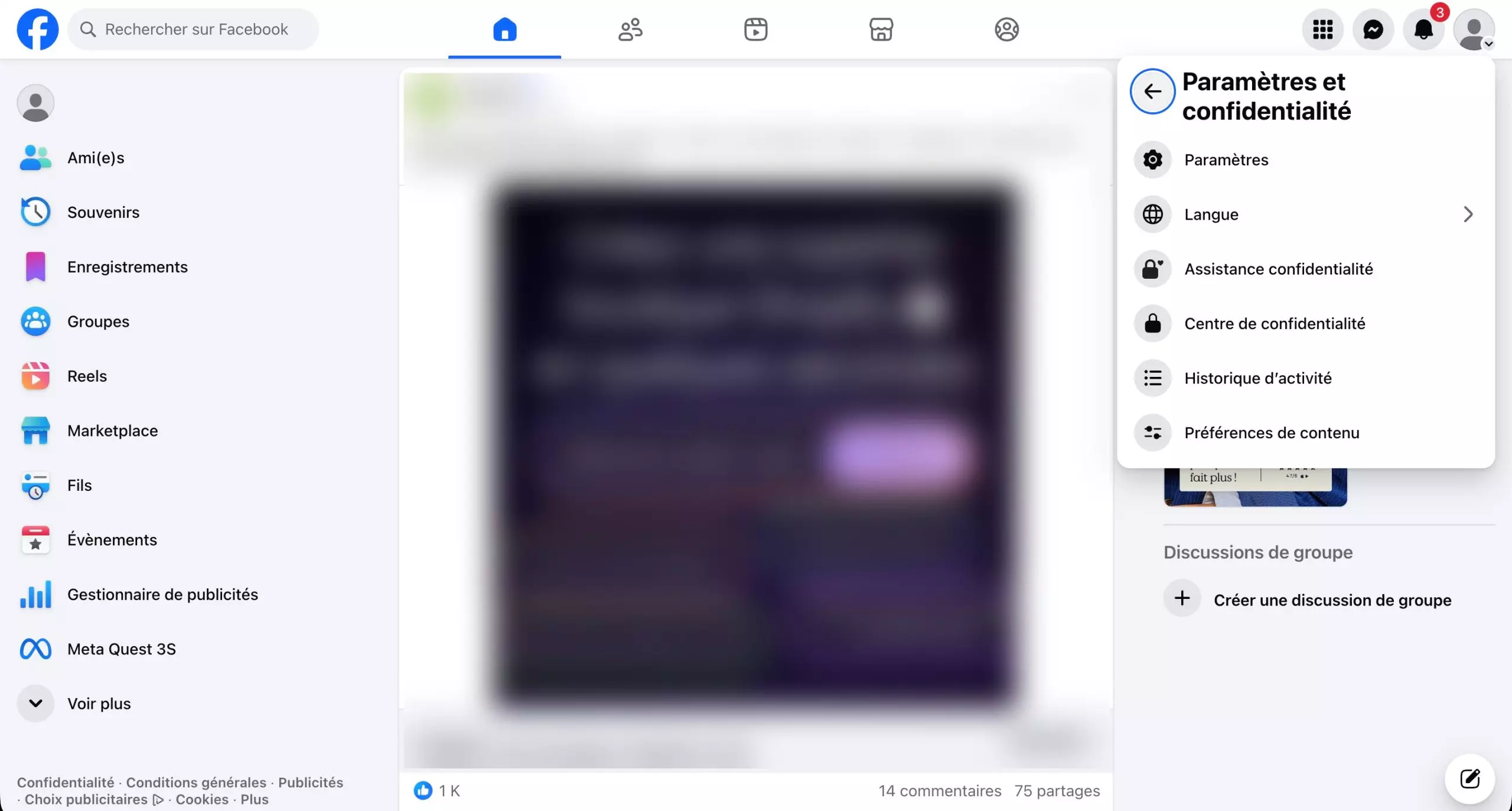 点击右上角的“设置” - 来源:Meta