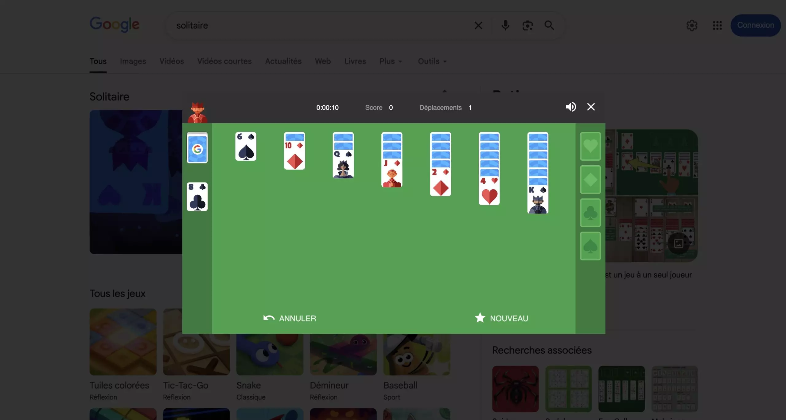 在众多便捷的休闲游戏中,谷歌也提供了内置的纸牌接龙版本。这款经典的纸牌游戏可以直接在搜索结果中畅玩。