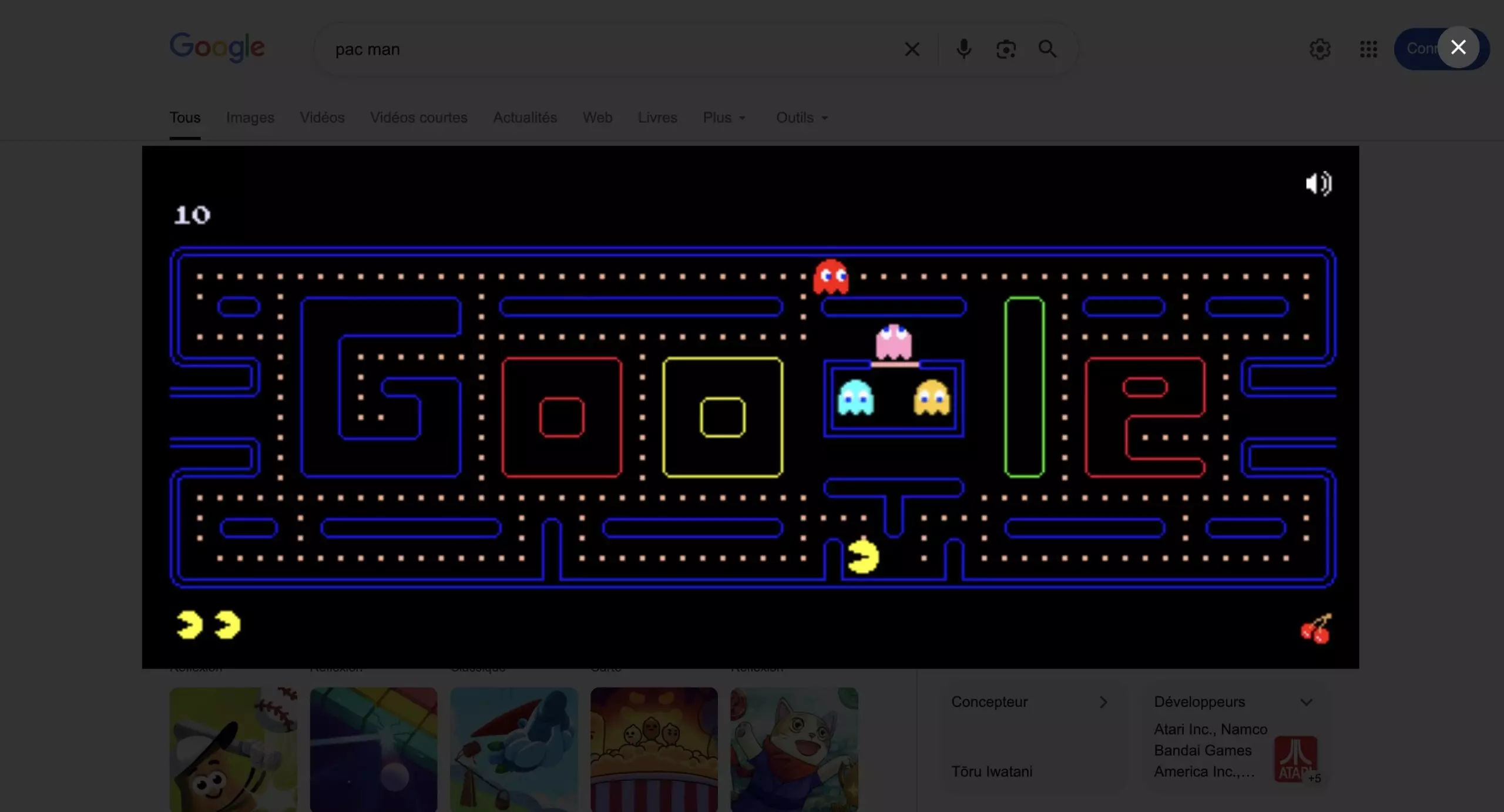 要访问它,只需在谷歌中输入“吃豆人”即可。随后会出现一个交互式游戏版本,您可以控制角色在迷宫中穿梭,同时躲避幽灵。